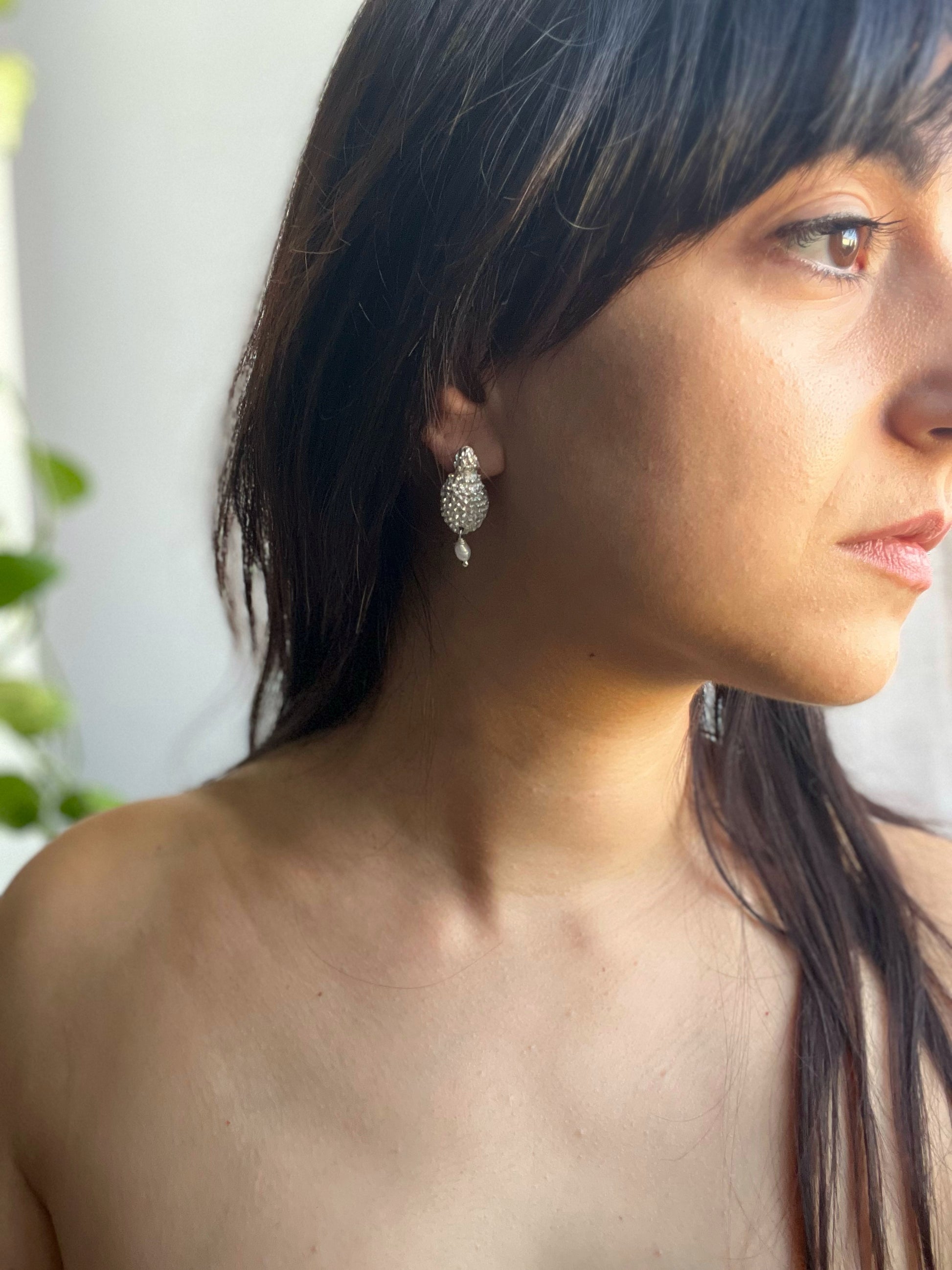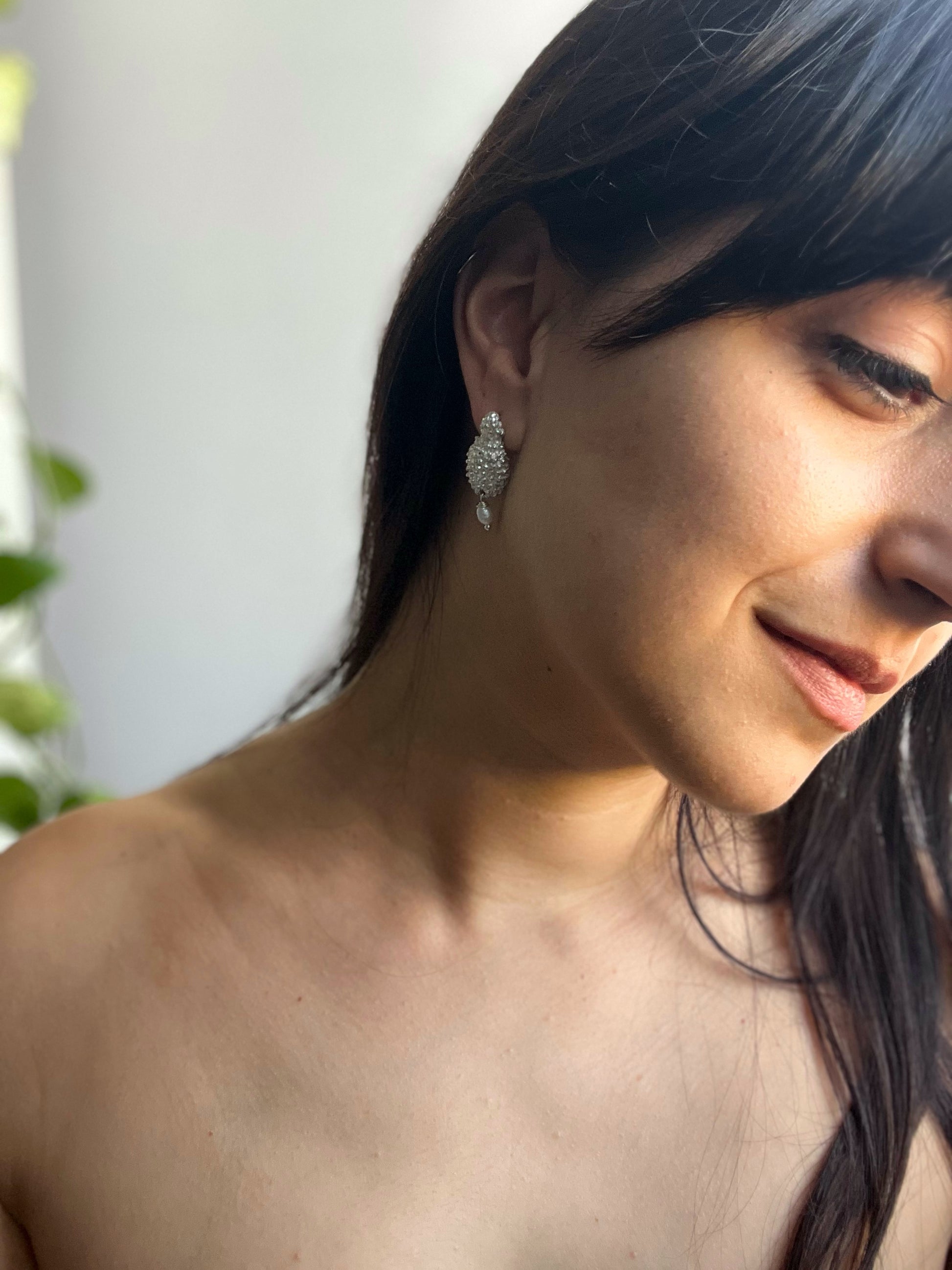 Ho provato a rappresentarlo attraverso degli orecchini leggeri, materici, con perle di fiume a rappresentare l'unione tra calma mentale, empatia e consapevolezza.