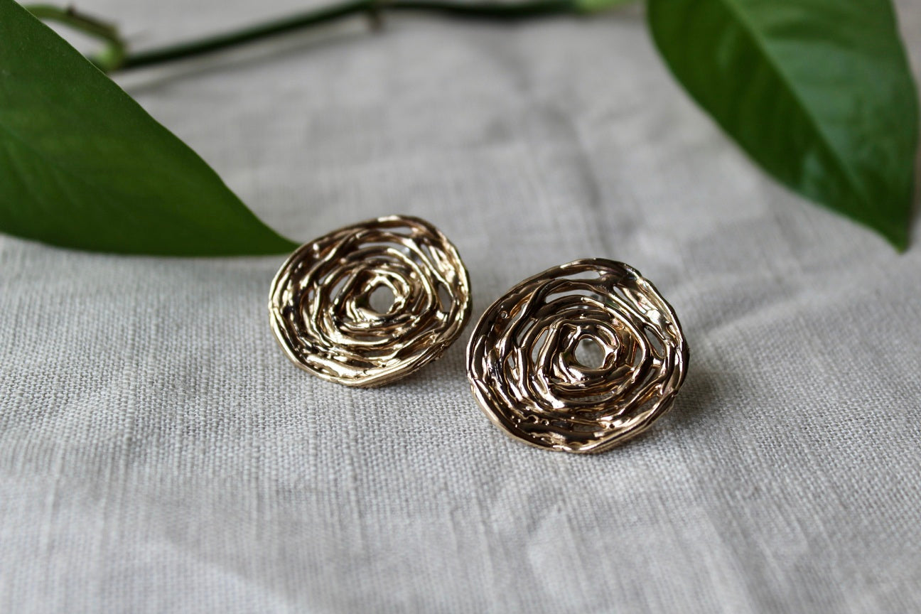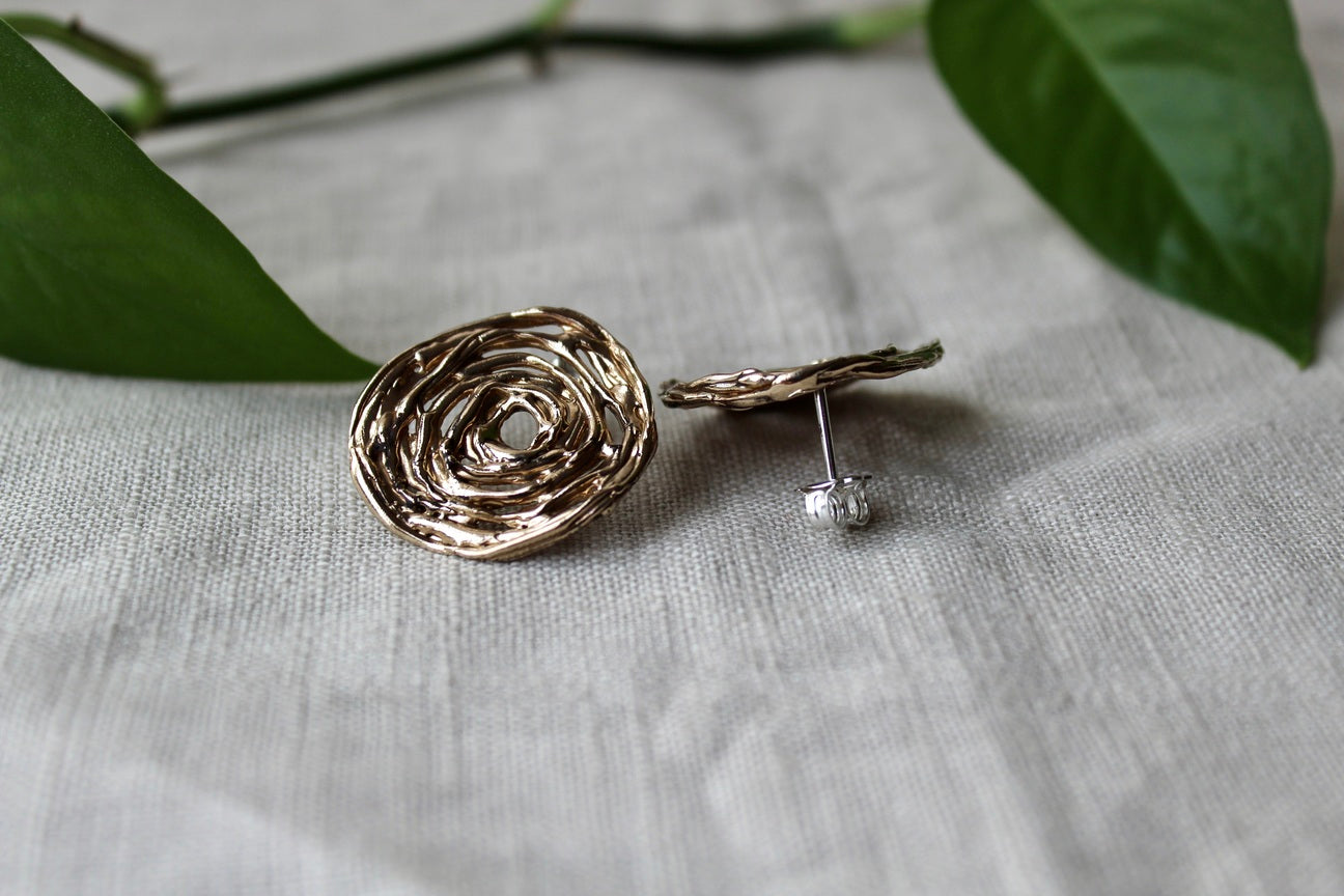 Gli orecchini Vertigo sono realizzati interamente a mano con la tecnica della cera persa.